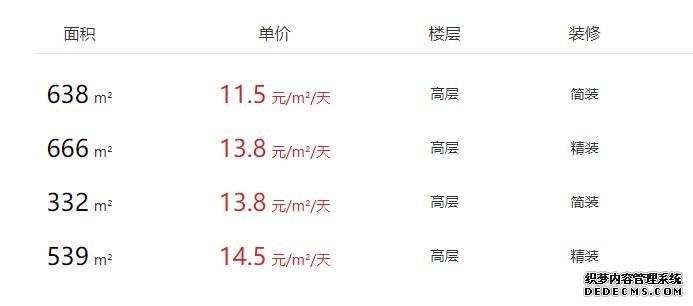 - 9.5元/m²/天 出租租金